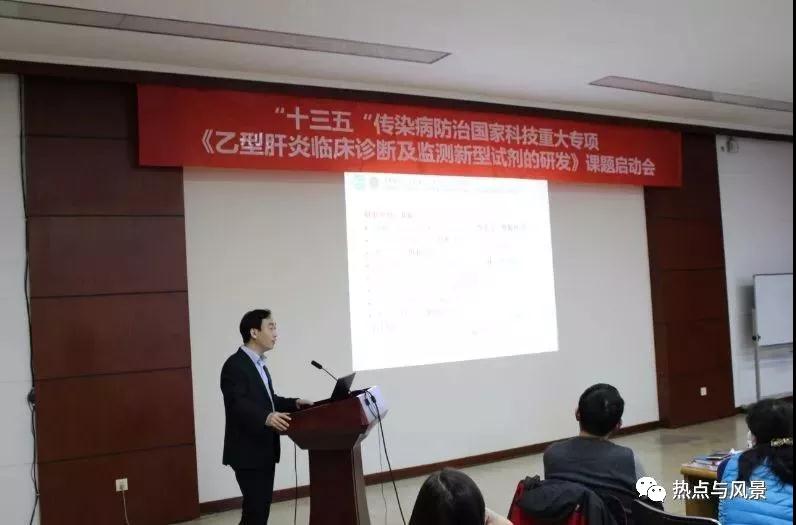 2018年1月13日,由北京熱景生物技術(shù)股份有限公司、北京大學(xué)魯鳳民教授主持的傳染病重大專項(xiàng)“十三五”課題《乙型肝炎臨床診斷及監(jiān)測新型試劑的研發(fā)》項(xiàng)目啟動(dòng)會(huì)在北京大學(xué)醫(yī)學(xué)部會(huì)議中心成功召開。國家衛(wèi)生計(jì)生委醫(yī)藥衛(wèi)生科技發(fā)展研究中心賀曉慧副主任,科教司重大專項(xiàng)處韓娟娟主任科員,傳染病專項(xiàng)“十三五”總體組專家、中國醫(yī)學(xué)科學(xué)院/北京協(xié)和醫(yī)學(xué)院科技管理處處長王健偉教授,北京大學(xué)醫(yī)學(xué)部科研處副處長樊建軍教授,北京熱景生物技術(shù)股份有限公司林長青董事長出席了會(huì)議。來自北京大學(xué)第一醫(yī)院的王貴強(qiáng)教授、徐小元教授,中國人民解放軍第三〇二醫(yī)院趙景民教授、徐東平教授,首都醫(yī)科大學(xué)附屬北京佑安醫(yī)院鄭素軍教授,廈門大學(xué)公共衛(wèi)生學(xué)院葛勝祥教授等項(xiàng)目組成員60余人參加了會(huì)議。