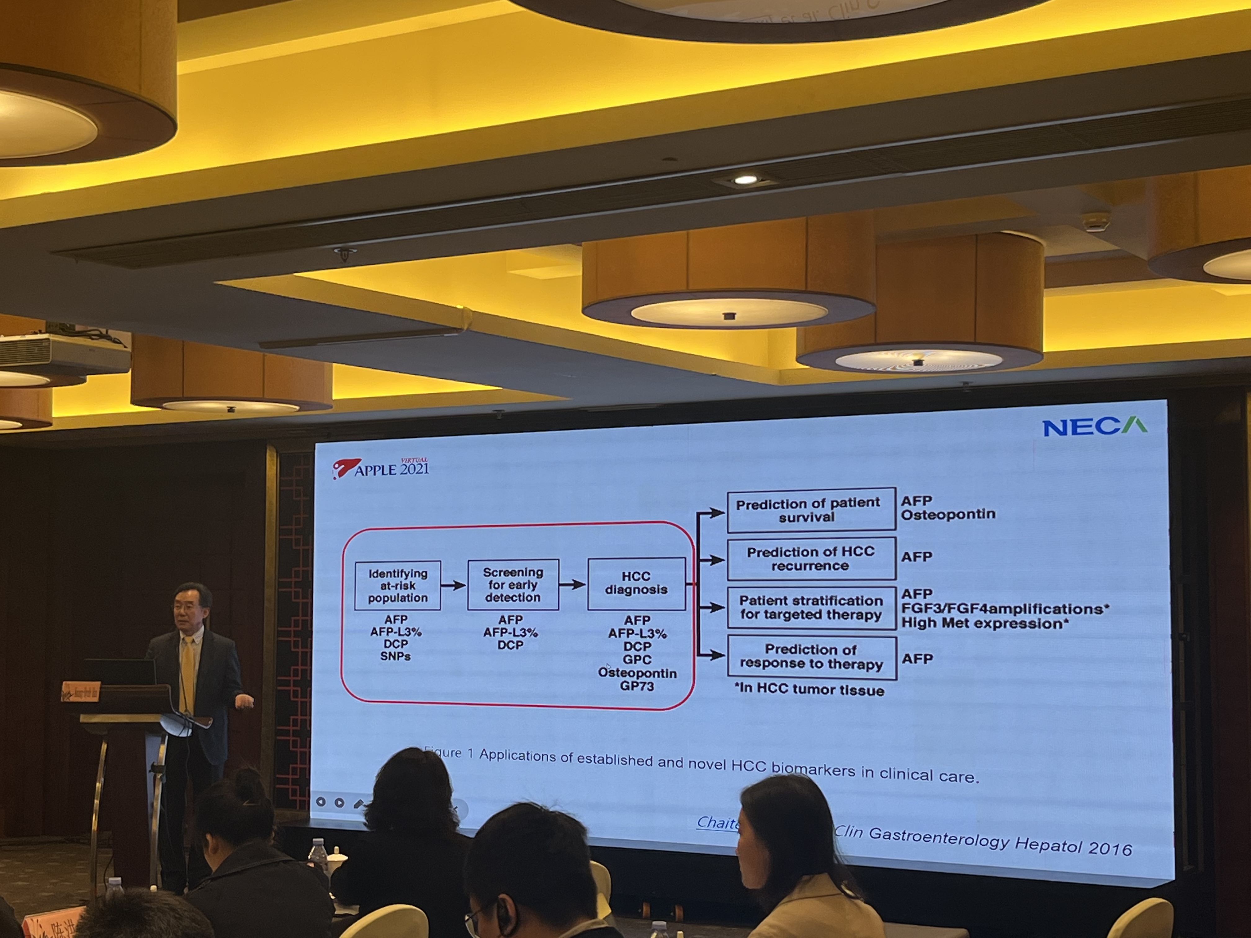 Masao Omata教授擁有肝病診療領(lǐng)域經(jīng)驗長達53年,被認為是“亞太肝癌防治第一人”,分享了在日本如何盡可能的發(fā)現(xiàn)小肝癌,通過血清腫瘤標(biāo)志物和US定期監(jiān)測肝癌風(fēng)險人群至關(guān)重要,肝癌三項(AFP、AFP-L3%、DCP)是日本肝癌篩查模式中發(fā)現(xiàn)小于3cm肝癌最重要的三個腫瘤標(biāo)志物,在肝癌篩查和診斷中相互補充。對這種模式,Masao Omata教授表示“它一定可以幫助你發(fā)現(xiàn)早期肝癌”,尤其強調(diào)了AFP-L3%是發(fā)現(xiàn)HCC微小病灶的一個關(guān)鍵因素,AFP陰性的HCC患者中仍可檢測到AFP-L3%顯著升高,HCC患者中可檢測到69%的患者AFP-L3%顯著升高,AFP和AFP-L3%同時升高患者占比15%。同時,Masao Omata教授特異強調(diào)了采用日本肝癌篩查模式,通過在肝癌早期篩查的基礎(chǔ)上加強全面健康管理,日本過去50年HCC發(fā)生率和死亡率顯著下降。