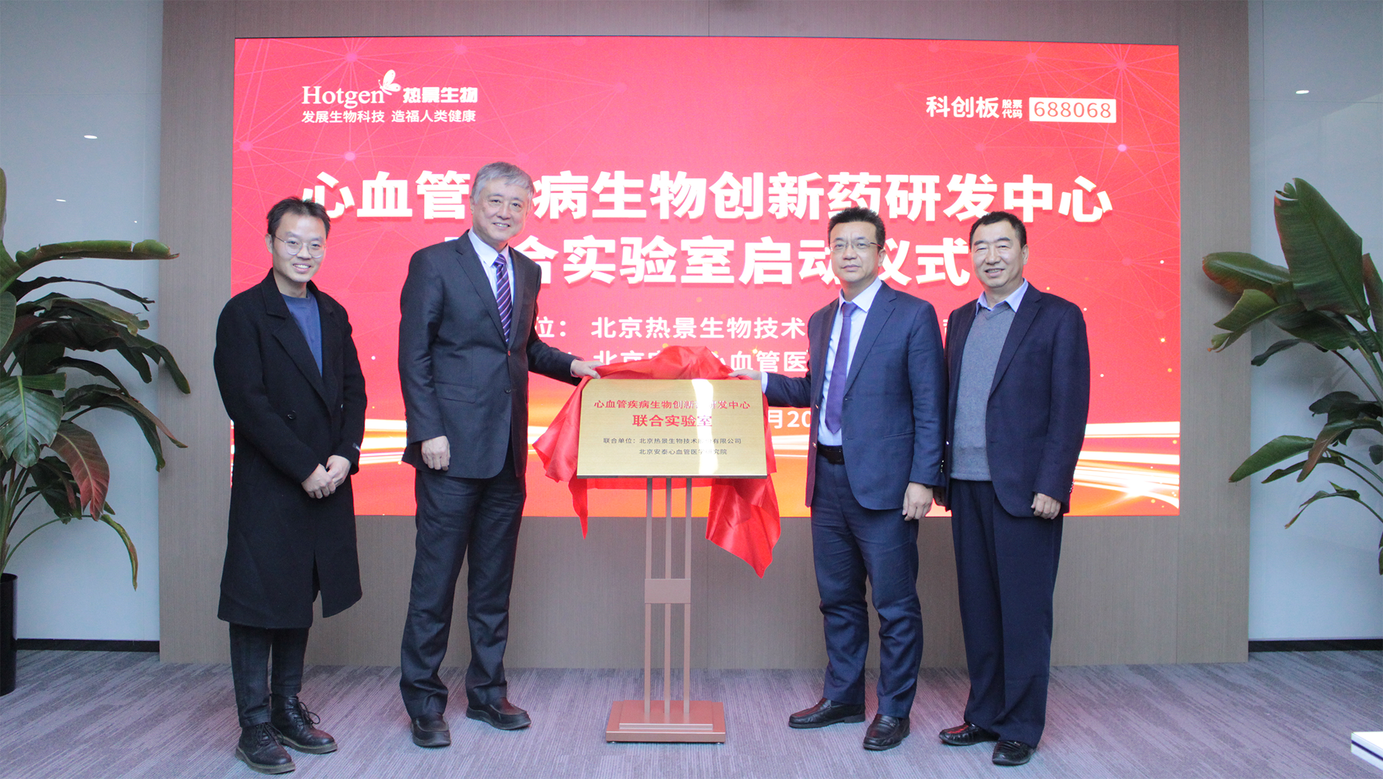 2023年11月20日,北京熱景生物技術(shù)股份有限公司董事長兼總裁林長青先生、北京安泰心血管醫(yī)學(xué)研究院院長杜杰教授、北京舜景生物醫(yī)藥技術(shù)有限公司總經(jīng)理孫志偉教授共同為“心血管疾病生物創(chuàng)新藥研發(fā)中心聯(lián)合實驗室”揭牌,這是一場具有里程碑意義的啟動儀式,標(biāo)志著熱景生物及其關(guān)聯(lián)公司在安泰心血管研究院的加持下,聚焦心血管疾病從診斷到治療的研發(fā)進(jìn)入快速發(fā)展階段。