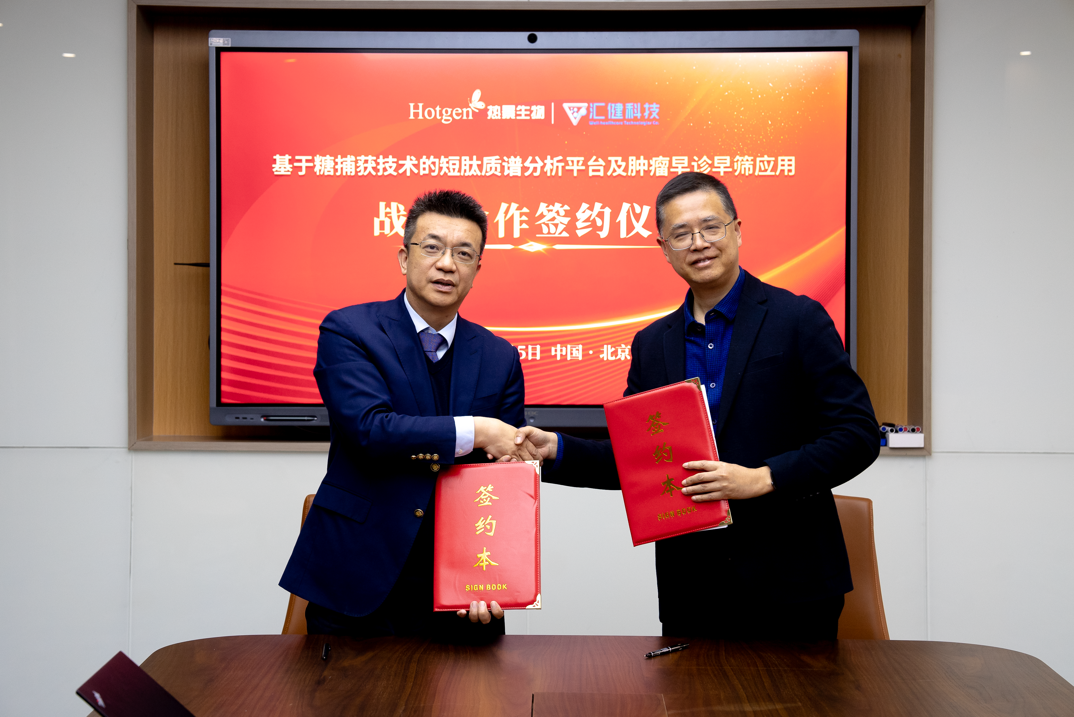 3月5日,北京熱景生物技術(shù)股份有限公司(以下簡稱“熱景生物”)與杭州匯健科技有限公司(以下簡稱“匯健科技”)在北京簽署戰(zhàn)略合作協(xié)議,雙方將充分發(fā)揮核心研發(fā)和技術(shù)優(yōu)勢,共同開發(fā)基于異常糖鏈短肽的質(zhì)譜診斷產(chǎn)品。熱景生物董事長兼總裁林長青先生與匯健科技董事長兼首席科學(xué)家鄔建敏教授代表雙方正式簽約。