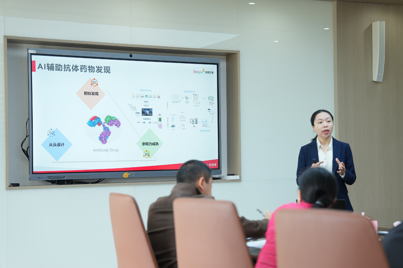 此次媒體參訪團走進熱景生物,通過與熱景生物&舜景醫(yī)藥董事長 林長青先生、舜景醫(yī)藥總經(jīng)理 孫志偉教授、X-Gen AI新藥發(fā)現(xiàn)與設計研究中心 許立達總監(jiān)訪談對話,從AI技術(shù)加速FIC抗體藥物研發(fā)實踐,探索生物醫(yī)藥行業(yè)新質(zhì)生產(chǎn)力。熱景生物旗下北京舜景生物醫(yī)藥技術(shù)有限公司(簡稱“舜景醫(yī)藥”)以創(chuàng)新驅(qū)動,致力于開發(fā)原創(chuàng)性(FIC,F(xiàn)irst in class)抗體藥物,通過“X-Gen AI新藥發(fā)現(xiàn)與設計研究中心”將人工智能算法與生物制藥技術(shù)深度融合,加速新藥發(fā)現(xiàn)和設計過程,以探索為醫(yī)療行業(yè)帶來更多創(chuàng)新突破。