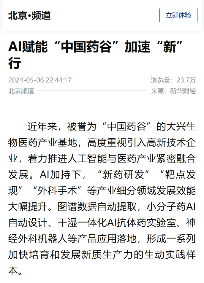 經(jīng)濟日報:“中國藥谷”依托人工智能創(chuàng)新研發(fā)