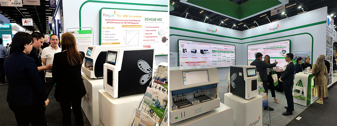 熱景生物的展位成為展會的焦點之一,并收獲了主辦方頒發(fā)的Better Stands銅獎。本次展會,熱景生物的化學發(fā)光和上轉(zhuǎn)發(fā)光免疫檢測解決方案,以及小分子免疫檢測新技術(shù)吸引了眾多參觀者的關(guān)注和贊譽。同時,公司還首次展出登革熱檢測產(chǎn)品,為熱帶地區(qū)傳染病診斷提供了新的解決方案。從高精度的診斷平臺,到高質(zhì)量診斷試劑和藥物原材料,熱景生物在各領(lǐng)域的技術(shù)優(yōu)勢和潛力獲得了與會各界的高度認可。