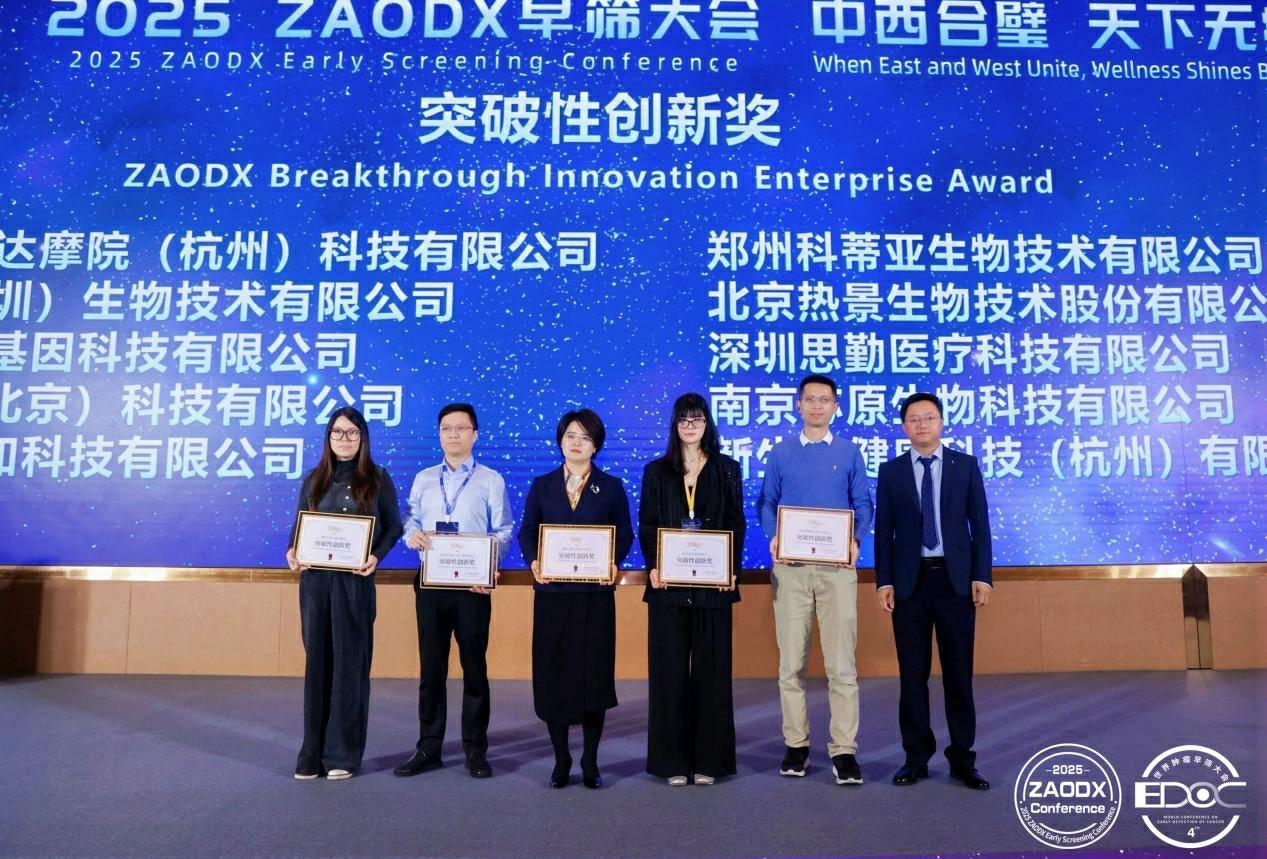 12月20日-21日,以“中西合璧,天下無(wú)疾”為主題的“2025 ZAODX早篩大會(huì)”在廣州舉辦。會(huì)議期間,主辦方公布了第四屆“金篩獎(jiǎng)”榜單,并舉行線下頒獎(jiǎng)儀式。熱景生物憑借“C-GALAD肝癌風(fēng)險(xiǎn)預(yù)警模型”的創(chuàng)新性以及“肝癌早篩健康中國(guó)行”公益項(xiàng)目的巨大社會(huì)和經(jīng)濟(jì)價(jià)值分別榮獲“突破性創(chuàng)新獎(jiǎng)”與“企業(yè)/機(jī)構(gòu)社會(huì)責(zé)任獎(jiǎng)”。一次斬獲兩項(xiàng)行業(yè)榮譽(yù),體現(xiàn)了業(yè)界對(duì)公司在肝癌早篩領(lǐng)域技術(shù)創(chuàng)新與社會(huì)貢獻(xiàn)的充分肯定。