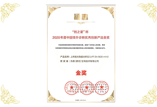 創(chuàng)之星杯2020年度中國體外診斷優(yōu)秀創(chuàng)新產(chǎn)品金獎